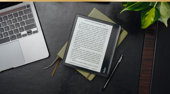 Kobo Sage's 8-inch verzonken, high-definition E Ink Carta 1200-aanraakscherm biedt een diep contrast, superheldere leesbaarheid en snellere pagina's op een groot scherm. De donkere modus biedt een nieuwe manier om vermoeide ogen te verminderen.