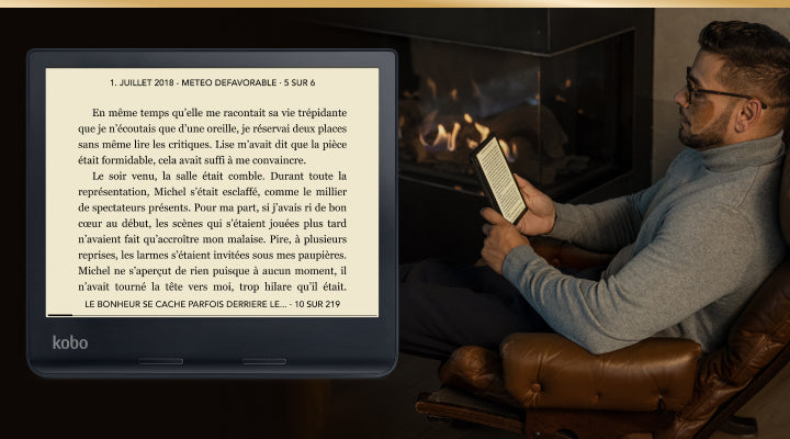Kobo Sage's opvallende display met ComfortLight PRO zorgt voor helderheid en blauw licht - het aanpassen van de kleurtemperatuur om uw ogen rust te geven - zodat u langer in het verhaal kunt blijven, zonder uw slaap te beïnvloeden.