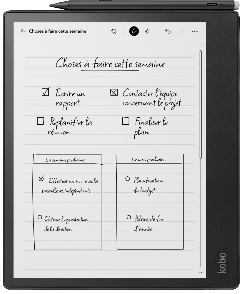 Destinée aux personnes qui regorgent d’idées et livrée avec le Stylet Kobo 2, la nouvelle Kobo Elipsa 2E est conçue pour vous aider à vous concentrer et à organiser vos pensées.